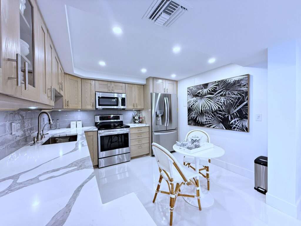 Wake up to breathtaking sunrises and enjoy stunning ocean views from every room in this beautifully updated residence. Designed for both style and comfort, this elegant unit features a modern kitchen and bathrooms, sleek stainless-steel appliances, an in-unit washer and dryer, and impact glass doors opening to a spacious balcony from every room. Originally a 1-bedroom convertible, the den has been transformed into a functional second bedroom, maximizing space and comfort.