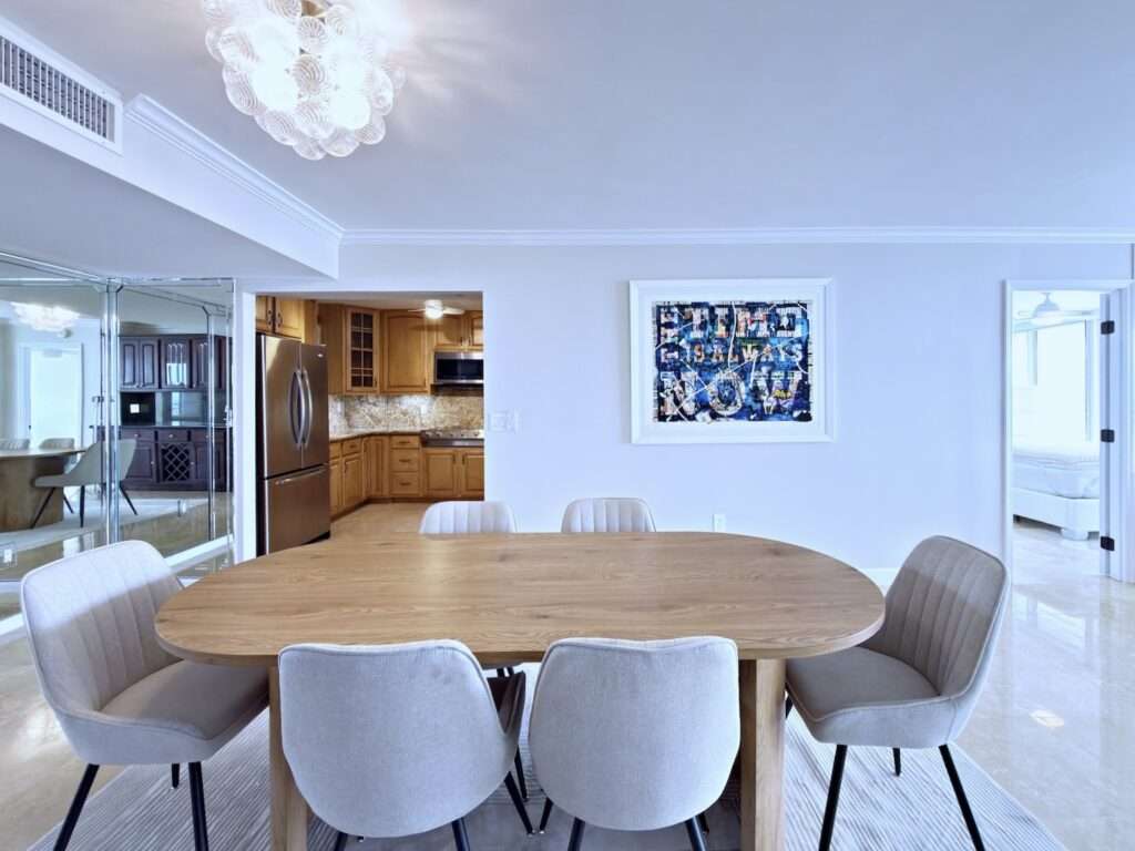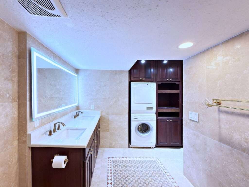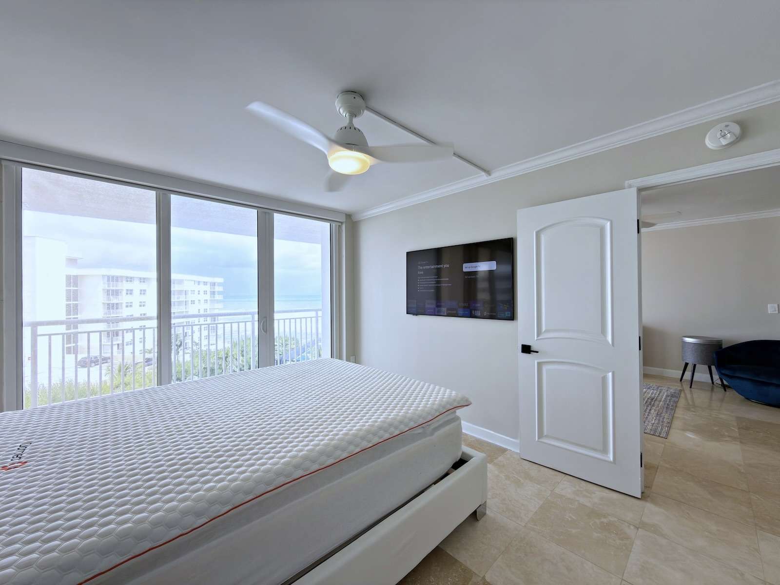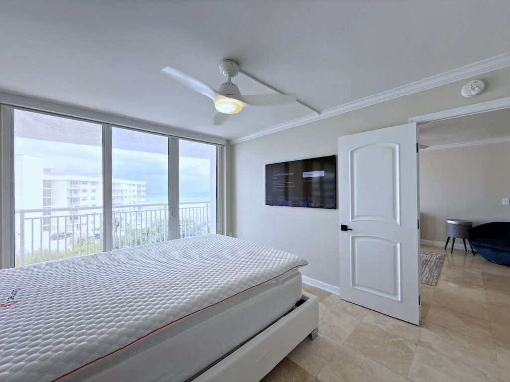 This beautifully updated apartment offers the perfect blend of luxury and comfort, featuring Ocean Views from every room. Each room seamlessly opens onto a generously sized balcony through floor-to-ceiling hurricane impact sliding doors. Enjoy the elegance of travertine flooring throughout. The sophisticated design extends to the exceptionally spacious primary bathroom, while the chef’s kitchen impresses with its unique design and granite countertops. For modern convenience, the unit features an in-unit washer and dryer along with brand-new electric blinds in every room. Perfectly situated just steps from the beach. Enjoy the spectacular sunrise! This exceptional residence offers an incomparable coastal lifestyle!